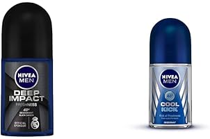 NIVEA Men Deodorant Roll On, Deep Impact Freshness, 50ml And NIVEA Men Roll-On Deodorant, Cool Kick, 50ml